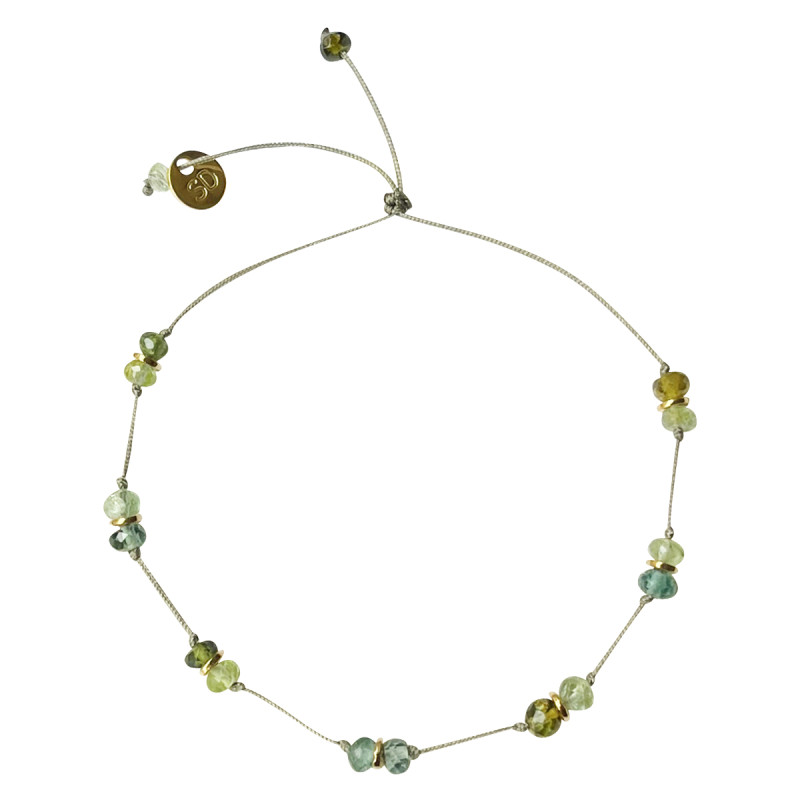 Large choice of bracelets made of various gemstones, such as tourmaline, sapphire, labradorite, amethyst, peridot, green garnet or aquamarine...