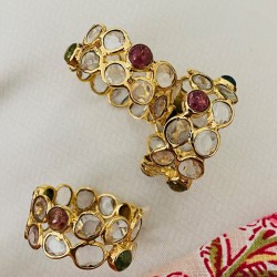 nice little cabochon fixe on crystal polki . Rock Crystal is natural .