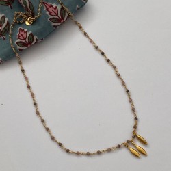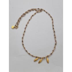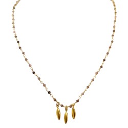Collier chaine rosaire de 42 cm plaqué or 3 microns, décliné en jaspe camel. Chaine de rappel de 3 cm.