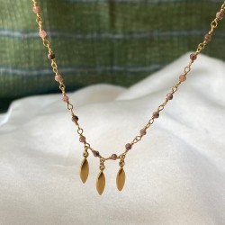 Collier chaine rosaire en Jaspe et plaqué or 3 microns.